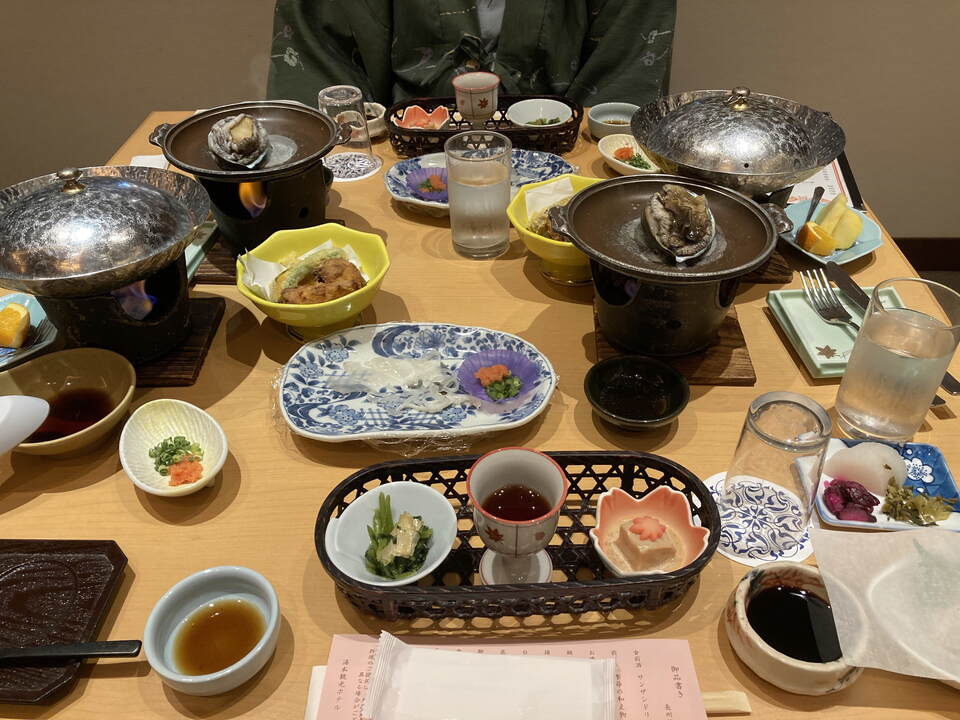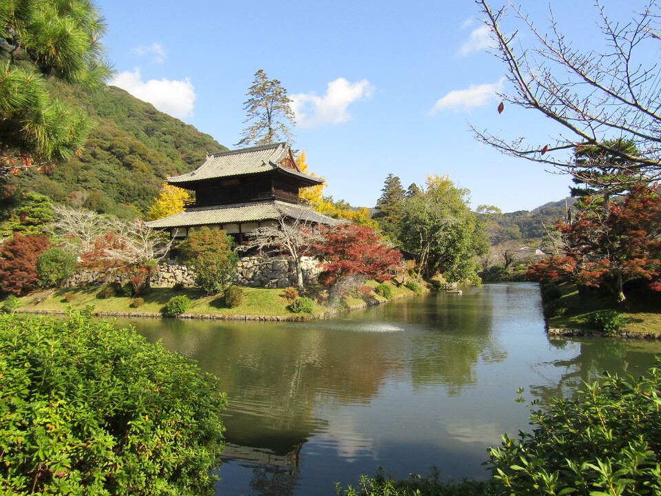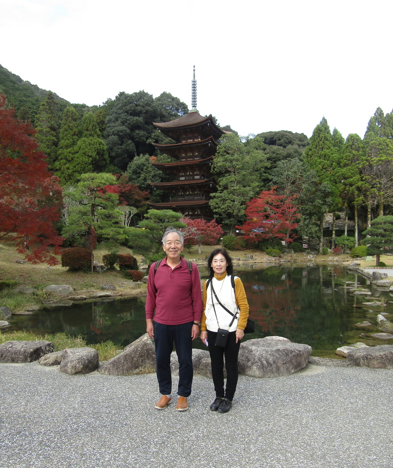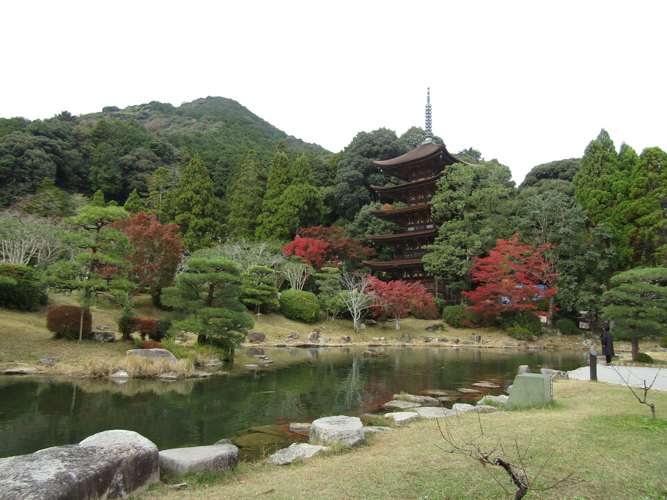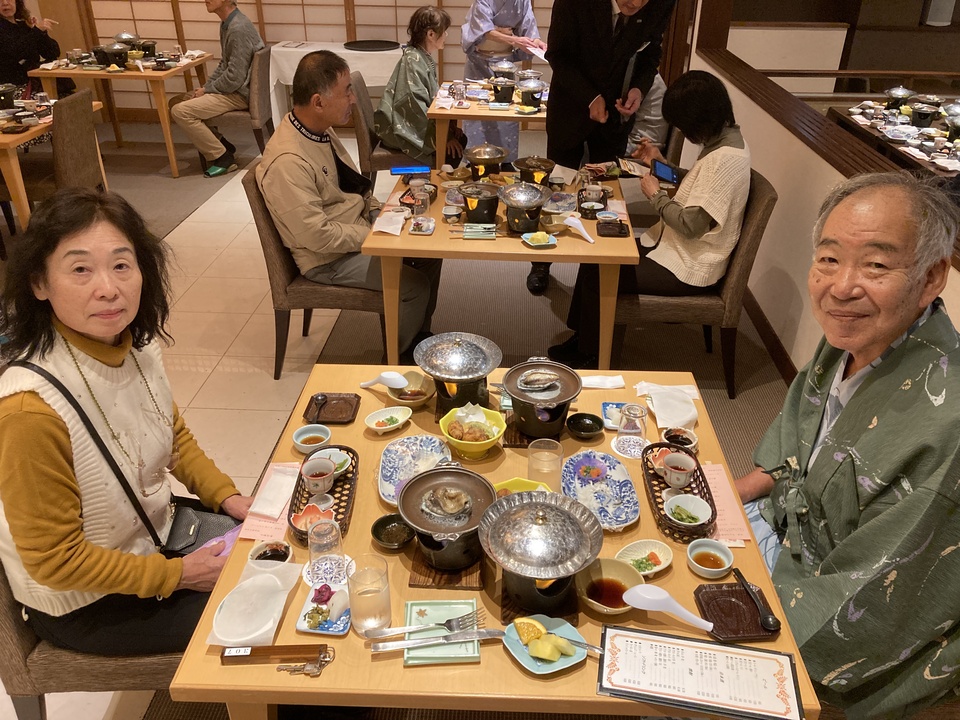 - 娯楽・娯楽教室 Flower&Craft 「山口・広島」二日目。 2025.11.17 ホテルで朝食「バイキング」後、バスで岩国市へ。 「錦帯橋」木造アーチで念願の写真・・・(^^♪ 「白山比咩神社」で御朱印を購入。 バスの時間があるので、ロープウェイでお城までは行けなかったので残念・・・(>_<) 紅葉は今一つでしたが、念願のアーチを見たので満足です。 その後、バスで広島に移動。 瑠璃光寺でとてもきれいに手入れされており五重塔をバックに写真撮影・・・(^^♪ 昼食は、瑠璃光寺の目の前にある長州苑で名物「瓦そば」を堪能。 盛り付けが (*'▽') 鬼瓦そのものですね・・・(^^♪ 私は炊き込みご飯が大好きなので、二人分食べちゃいました !(^^)! ちなみに瓦そばは主人にお任せ・・・(*^-^*) 食事のあとは、お土産・お土産・・・(^^♪ その後、松陰神社や松下村塾等を見学。 そして、菊屋家住宅で朝の番組TVで撮影された「電話室五番」等など・・・。 菊屋家の「秋の庭園特別公開」を見学をして萩城下町を探索予定でしたが、 これもまた菊屋家でとても丁寧に説明を受けて城下町の探索ができませんでした。 その後、本日のお泊り「湯元観光ホテル西京」で温泉とフグ付き和食(夕食)で二日目が終わってしまいました。 明日は、TVのコマーシャルに出てくる海土ケ瀬公園(角島大橋のフォトスポット)が楽しみです。(*^-^*)