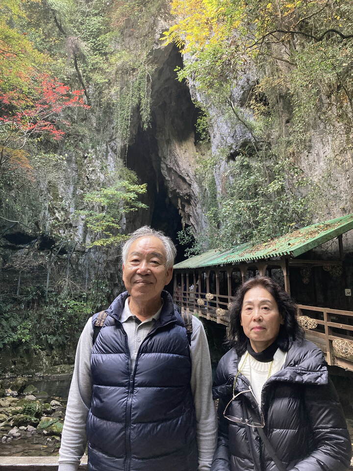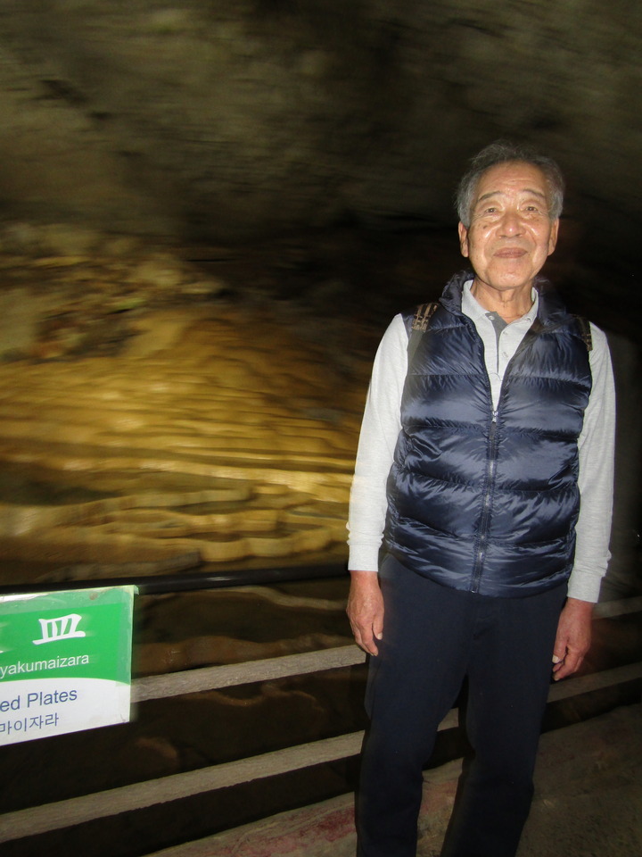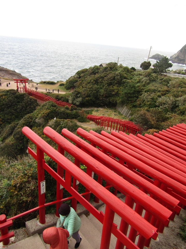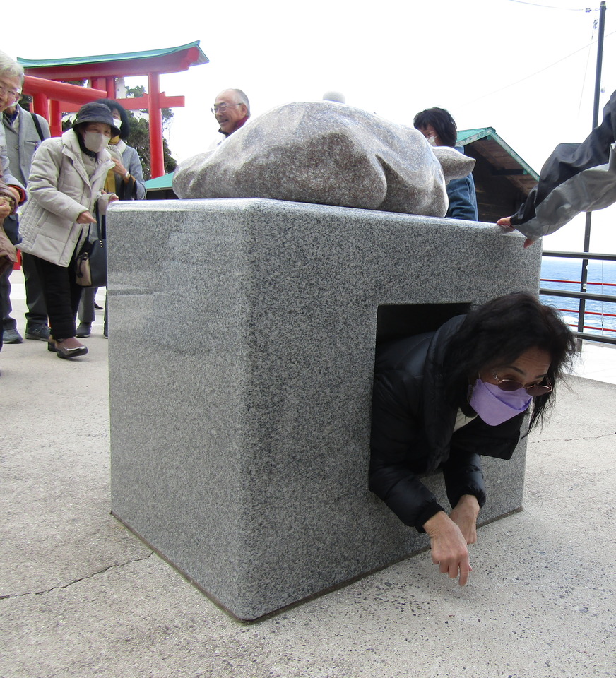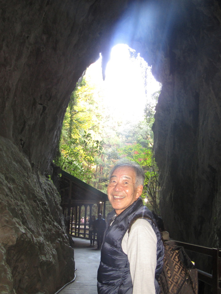 - 娯楽・娯楽教室 Flower&Craft「広島・山口」三日目。 2025.11.18 長門湯元温泉からバスで海士ケ瀬戸公園へ向かいTVのコマーシャルでおなじみの角島大橋のフォトスポットへ。 移動中思ったのですが、紅葉が今一つ・・・年々秋が・・・さみしいですね。 瀬戸公園に到着。 日本海は風が強いので自慢の髪が・・・鬼婆です。(>_<) 道の真ん中で写真を撮ろうと思っても車が結構走り、TVと同じポジションで取れませんでした。 その後、元乃隅稲成神社「日本海に映える123基の朱色の鳥居」にレッツゴー・・・。 鳥居を下から登ろうと思いましたが、御朱印長を購入したいので、短縮して駐車場の横から登りました。 登るといっても少しの斜面と数段の階段です。 アハハ! なので写真は123基の鳥居の上からパチリ・パチリ・・・(^^♪ 御朱印長を購入して、訳も分からず夫婦稲荷の真ん中に何やらくぐるものが・・・(^^ 結構小さな穴でしたが、軽く潜り抜けました。 帰って来てから、写真の整理をしていてきずきましたが 女性は「子宝」男性は「出世」のようですね。 酔い止めくすりを服用して参加してるので (/o\) どんくさい私です・・・。 お昼は長門・海鮮村北長門で剣先イカ1杯付和食善をいただきその後、 コーヒータイムならぬソフトクリームを食べて次の秋芳洞へ レッツゴー・・・(^^ 13:30に秋芳洞に到着。 いざ鍾乳洞の中に入り色々見てみましたが特に「黄金柱」34年前より輝きがないですね。 出口で思わぬいい写真が取れました。 その後、徳山駅に向かいここで少し時間があるので、お饅頭で腹ごしらえ・・・(^^ 新幹線のぞみ 徳山16:59発~名古屋19:34着に乗車。 名古屋駅着後、いつものお店で夕食をいただき 名駅駅前「今年のクリスマスツリー」 と写真を撮りいざ地下鉄・バスを乗り返して・・・我が家に・・・。